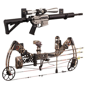 The HD04 Horizontal Gun Rack from securely holds a rife, shotgun or bow in a horizontal fashion. It can be purchased for use with Hold Up Display 3.5" aluminum panels or for standalone use.