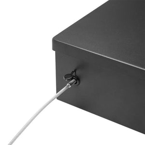 The Barska AX11910 Digital Portable Keypad Lock Box features solid steel construction with a digital lock and keyed backup.  The digital lock takes four AA batteries which are included and it has a protective floor mat to ensure that your items are not damaged.  The steel cable can be removed if you like after opening the lock box.
