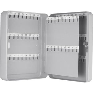 The Barska CB13234 90 Keys Lock Box Grey features solid steel construction, included mounting hardware, screws, labels, and two keys for the locking mechanism. This lock box also comes with a limited one year warranty.