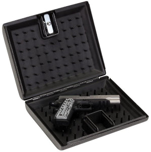 Bring your pistol almost anywhere on the go with Browning's PVPORT Pistol Safe. The clamshell design allows for quick access to your contents and pistol when unlocked. A easy to use key lock allows for easy accessibility. There is no need to remember a combination or worry about a lock failing. The soft foam interior keeps your items in place and protected. Use the security cable to secure to a solid surface.