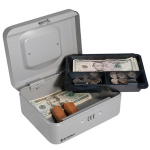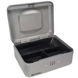 The Barska CB11784 8" Cash Box with Combination is a great choice for people that have smaller cash based sales such as bake sales, raffles, garage sales, etc. to keep your cash locked up and organized. It’s a versatile and useful item for locking up cash and even small sized valuables such as cell phones or other small electronic devices. The carrying handle makes it easily portable plus it can be easily hidden in the trunk of a car or even placed inside of a larger safe.