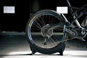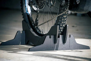 This Tactical Walls Bike Stand can fit many different tire sizes, including road, gravel, cross country, trail, plus, and fat series up to a maximum of 5.40" wide.