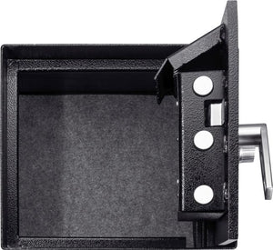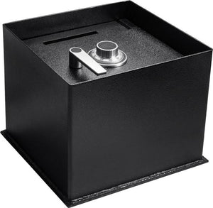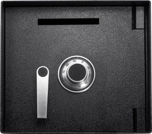 The Barska AX13200 Floor Safe With Combination Lock Safe features solid steel construction and is designed to be installed within the foundation of your home or business. It is surrounded by concrete making it extremely secure and it sits flush with the floor so it can easily be disguised under a rug or furnishings. The solid steel construction also has a drop-in slot that allows users to quickly deposit important items into the safe without having to open it. The 0.89 cubic feet of storage is sufficient for cash, jewelry, small electronics or important documents. The lock is a combination lock and the lid is solid steel. The safe also has a floor mat to ensure that your items are not scratched or damaged.