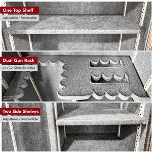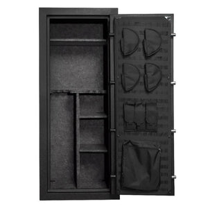 Another great feature of the Stealth 23 Gun Safe is the Molle interior door organizer. This will allow you to store items on the door and free up some additional space inside the safe. This door organizer is fully customizable and allows you to move pistol holsters to the bottom, on the right side or left side depending on your needs. You can also remove all the accessories and use your own if you want. The accessories can be added or removed with the strap and snap system.