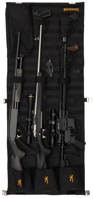 CLICK HERE to watch our video on “What to Do When Your Safe Arrives.”This is Browning's medium door organizer that will adjust to fit a door panel width from 18" to 23" wide. It has a 48" minimum door panel height. It is like adding a few more square feet to your safe. You'll be amazed at how many items you can fit in the organizer. With 3 long gun (up to 47" long) storage pouches with barrel straps, 3 gun pouches, 1 document pouch, 1 multipurpose pouch your door will now soak up all those extras you wish you could fit in your current safe. It even accepts miliary-style MOLLE pouches and accessories. The Browning Medium Door Organizer is compatible with all Browning ProSteel Gun Safes. It even can fit many popular brands of gun safes.