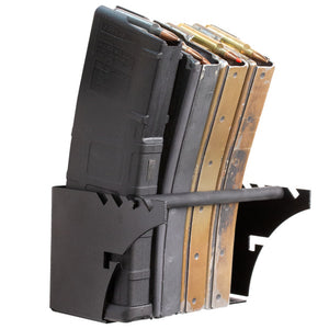 This Magazine holder from Hold Up Displays is designed to securely store and display up to 4 standard AK-47, AR-15, or AR-10 Magazine. It's adjustable padded retention bar means you can also store smaller caliber rifle and pistol magazines as well. These are finished in a durable black finish ensuring it will last long into the future.