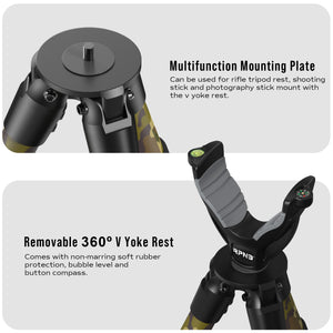 Constructed from heavy-duty aluminum alloy, this shooting tripod offers a winning combination of strength and portability. The camouflage coating finish adds a stylish touch and provides excellent resistance against rust and corrosion, ensuring long-lasting performance in the field.