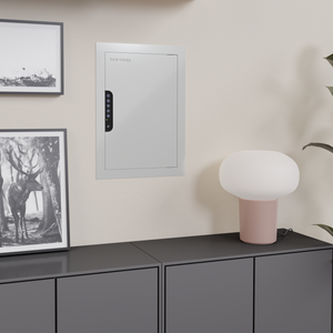 CLICK HERE to watch our video on “What to Do When Your Safe Arrives.”Protect your valuables by keeping them hidden from view with the SA-IWV-W Sanctuary In-Wall Safe in White. This cleverly designed safe fits snugly behind a picture or mirror, concealed from prying eyes. It is built from welded steel and features a sturdy frame with dual locking latch points, ensuring formidable security against intruders.