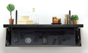 Installing the Tactical Walls 1242RLS is as easy as hanging a standard shelf. To access the hidden compartment, just disengage the hidden locks with the supplied keys. The bottom half of the shelf will lower with the assistance of a pneumatic strut.