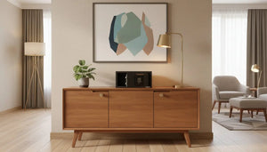 The compact, low-profile design fits easily into cabinets, closets, built-ins, or under counters, allowing secure storage without disrupting your space's layout.