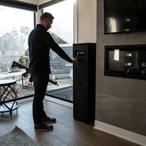 CLICK HERE to watch our video on “What to Do When Your Safe Arrives.”The Vaultek ViSN NRS800i redefines smart storage with its heavy-duty design and spacious capacity, crafted to secure up to eight rifles and multiple handguns. Its slim, space-saving profile makes it an excellent choice for diverse storage needs, while the modular interior offers maximum flexibility. The perforated back panel and magnetic mounting system allow you to customize your setup easily. The included universal twin holster, five-barrel mounts, slim holster, and 2/3 width shelf provide ample organization options, with additional accessories available to enhance your storage further. Built with tough 14-gauge carbon steel and a corrosion-resistant finish, the NRS800i is designed for uncompromising durability.
