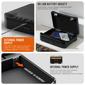Never worry about being locked out in critical moments. The built-in USB Type-C port serves as an emergency power option in case of battery depletion or if you lose your key, making sure you're never left without access.