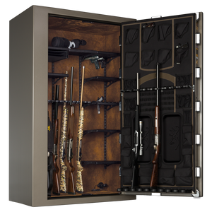 The Browning Medallion Series M49T is designed for gun owners who want generous vertical storage, a more compact footprint, and dependable protection. Its tall interior provides organized storage for up to 49 long guns, including optics-equipped and extra-tall rifles, while its slimmer width makes it easier to fit in rooms with limited space without sacrificing height or security.