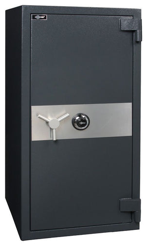 • The overall thickness of 4-5/8" and is constructed with a 2" defense barrier of outer and inner steel plates creating a burglary resistant structure enclosing a unique proprietary, fire resistant material.