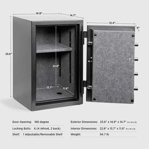A versatile, adjustable, and removable shelf makes organizing a breeze. Whether you're storing documents, jewelry, cash, or electronics, the customizable brackets allow you to tailor the space to fit your needs, ensuring quick access and efficient storage.