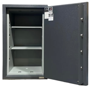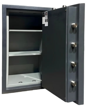 The Hollon MJ-3418C TL-30 is the fourth size in the MJ TL-30 series. It is 39.40" high x 23.60" wide x 22.60" deep. It offers 4.69 cubic feet of interior space. This safe is used in Jewelry Stores, Pharmacies with Schedule I & II drugs, Marijuana dispensaries and shops, Pawn Shops, and anyone who needs to protect a large amount of value.