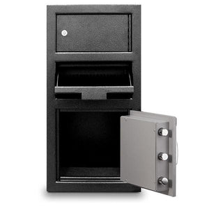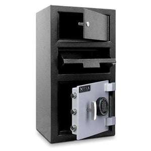 CLICK HERE to watch our video on “What to Do When Your Safe Arrives.”The Mesa MFL2014EOLK Front Drop Depository Safe is perfect for any business that needs a deposit safe with the convenience of having a top keyed locker to store your change in. This locker keeps your employees from accessing the deposits below while still giving them access to spare change. This Mesa Deposit Safe comes standard with a digital electronic lock but can be ordered with a dial combination lock for the same price. Buy this professional grade safe for the perfect cash management solution.