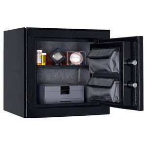 The Cannon FD1819-H1HEB-23 Fortified Series Executive Home Safe is built for those who demand superior protection for their valuables. With a solid steel construction and a hardplate anti-drill feature, this safe is engineered to resist unauthorized access. Its electronic lock with an easy-access keypad and backup key ensures secure yet convenient entry. The dual-stage triple fin door seal offers exceptional smoke and fire protection, complementing its 60-minute fire resistance at 1200° F, giving you peace of mind even in extreme conditions.