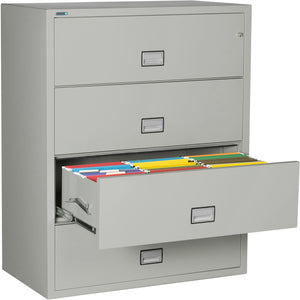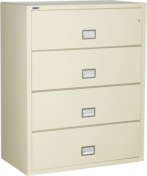 CLICK HERE to watch our video on “What to Do When Your Safe Arrives.”When it comes to protecting your most valuable documents from fire, floods or even impact, the Phoenix Safe LAT4W44 44” 4 Drawer Lateral Size Fire File Cabinet will be be one of your most valuable assets. Designed to keep your documents safe from disaster, the Phoenix LAT4W44 is not your average filing cabinet. Its robust construction and insurance features turn it into a bestselling model. Weighing 972 lbs, Phoenix LAT4W44 is a versatile, modern lateral filing cabinet with 2 drawers, a key lock and two keys. Due to its hearty dimensions (54.72”H x 44”W x 23.625"D) and multifaceted design, it represents the perfect fortress to protect your valuable documents. Warranted and insured, this model guarantees a superior protection against smoke damage, fire, water and impact and leaves nothing to chance.