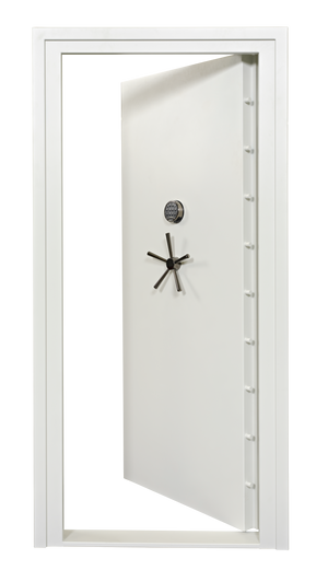 With the SnapSafe Premium Vault Room Door 36 in white, firearms can be stored on walls or stacked in the open, along with accessories, ammunition, and other supplies behind the vault door. The larger secured space allows for an open and visual layout to inspect, organize and augment your supplies and safety plan. You can also use this door to protect yourself in the event of an emergency.