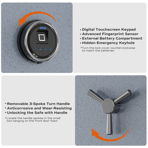 • Emergency alert system - An alarm will be triggered if the safe is shaken violently. It has a one-minute beep alarm and can only be unlocked with the backup key. The keypad and fingerprint sensor will be temporarily disabled