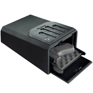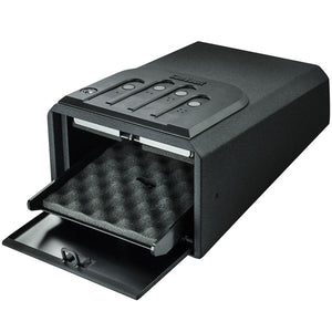CLICK HERE to watch our video on “What to Do When Your Safe Arrives.”The GunVault GV1050-19 MiniVault Handgun Safe is engineered for rapid access and uncompromising security, making it an excellent choice for responsible firearm storage. Upon entering the correct code, the safe's auto slide-out drawer smoothly presents your handgun 20% faster than the previous model, ensuring instant retrieval when every second counts. The No-Eyes® illuminated keypad allows for quick, discreet entry, even in complete darkness, while a built-in red LED interior light enhances visibility in low-light conditions. This safe is designed for reliability and includes a manual backup key with a dimpled design, offering added pick resistance.