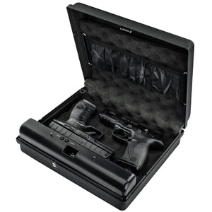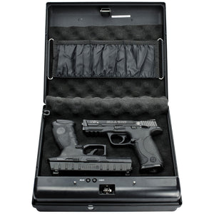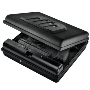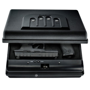 CLICK HERE to watch our video on “What to Do When Your Safe Arrives.”The GunVault MV1050-19 MicroVault XL Quick Access Handgun Safe is built for superior protection at home or on the go. Featuring a reinforced steel lip and full perimeter interior anti-pry tabs, this safe effectively resists prying and bounce-open attacks to keep your valuables secure. The steel security cable allows you to tether the safe to a fixed object, providing added protection when traveling. Its sleek black finish and compact, lightweight design make it an excellent choice for responsible gun owners who need a portable yet durable storage solution.