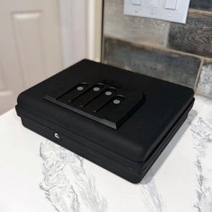 The GunVault MV1050-19 MicroVault XL Quick Access Handgun Safe is built for superior protection at home or on the go. Featuring a reinforced steel lip and full perimeter interior anti-pry tabs, this safe effectively resists prying and bounce-open attacks to keep your valuables secure. The steel security cable allows you to tether the safe to a fixed object, providing added protection when traveling. Its sleek black finish and compact, lightweight design make it an excellent choice for responsible gun owners who need a portable yet durable storage solution.