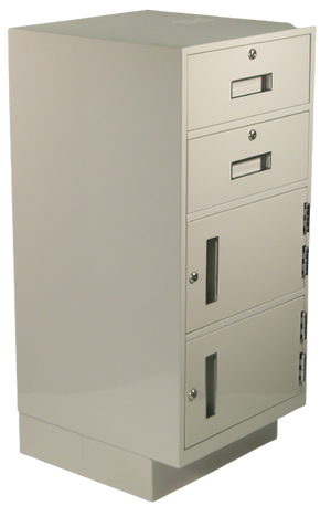 CLICK HERE to watch our video on “What to Do When Your Safe Arrives.”Cash handling is important to any business, especially financial institutions that have cash on hand. The Fenco 205 Pedestal Unit with 2 Locking Box Drawers and 2 Locking Cupboard Drawers is 38.50" tall. It is Fenco's Goldine 200 Series that offers versatility for your teller line, teller pod, back counter, or work room. The overall dimensions are 38.50" high by 18.00" wide by 19.00" deep. The outside drawers and doors are all locked by a key lock with 2 keys.