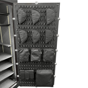 It also features a Molle-style interior door organizer. This allows you to free up space inside your gun safe by putting items on the door. It will enable full-door customization by moving pistol holsters, magazine pouches, and zippered pockets where you want. You can even add additional accessories. The inside comes with an electrical outlet kit with three outlets and two USB slots to charge your electronic devices inside your safe. Four anchor holes and mounting hardware are included to secure the safe to a solid surface.