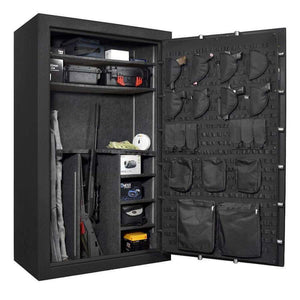 The Stealth UL50 Gun Safe is extra tall and extra wide. It has a UL Residential Security Container (RSC) rating and is the tallest in the series at 70.00" high by 42.00" wide by 24.00" deep. It will give you plenty of room inside for up to 50 long guns and has two top shelves for other valuables. With high-end features and built with quality in mind, the UL50 comes at a great price.