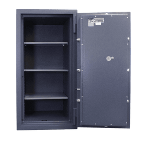 The lock on the CFX452020 is equipped with a standard U.L. listed Group II key changeable dial combination lock. An ESL10XL or an even better ESL20XL are available as upgrades for an extra charge. The locks are protected by a massive drill shattering hard plate and two additional spring-loaded devices. The hinges on this high security safe offer a vertical height adjustment and utilizes an oil impregnated bearing ensuring easy door operation.