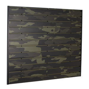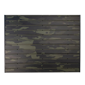 The Hold Up Displays Black Camo Slatwall Panel Set HDSW2-3X4-BC provides a durable, modular foundation for building your own tactical gun wall or storage system. Made from six heavy-duty extruded aluminum Strongwall rails, this setup creates a sturdy 3' x 4' mounting surface that pairs perfectly with Hold up Displays rifle racks, pistol holders, shelves, and accessory mounts. The custom black camo finish adds visual contrast and a tactical aesthetic without sacrificing strength or functionality.