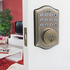 CLICK HERE to watch our video on “What to Do When Your Safe Arrives.”Honeywell's 8712109 Electronic Deadbolt Door Lock features an easy to use 1 touch locking system. All it takes to lock is with one touch of the programming button. You can program up to 50 different user codes into the lock. These codes can be programmed and deleted as desired for service personnel, office staff or guests. It can also be used for home use for babysitters, maintenance, repairs, cleaning staff, or if you are on vacation. This way they never have your code.