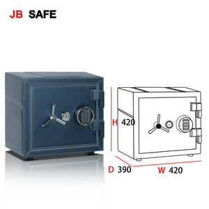 The JB Watch Winder & Jewelry Safe Fireproof 2 Jewelry Drawers & 2 Watch Winders seamlessly blend opulence and functionality. The exterior is adorned with luxurious, dark blue leather-like material, exuding a refined elegance that effortlessly complements any decor. The three-spoke chrome handle adds a touch of sophistication, allowing for effortless opening and closing of the door. Make a statement with a safe that embodies the essence of luxury.