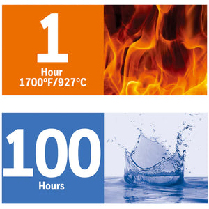 Unlike basic fire chests, the Honeywell 1104 is UL certified for 1-hour fire resistance at up to 1700°F and independently tested for 100 hours of waterproof protection when submerged up to 1 meter. Its interior offers 0.39 cubic feet of storage space, enough to accommodate legal, letter, and A4 documents flat. The chest is made from heavy-duty insulated double-wall construction with reinforced corners, a compression-sealed waterproof latch, and load-bearing safety hinges that hold the lid securely open. A privacy key lock with dual keys ensures only authorized access.