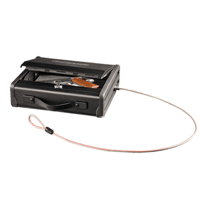Inside the Sentry PP1K Portable Pistol Safe is high compression foam. This offers protection from scratching and other damage to your handguns and valuables while they are inside the safe. A carrying handle makes taking your safe in your vehicle to the range convenient. You can secure the PP1K with the tethering cable to a solid surface for added security. It can be secured at home or in your vehicle.
