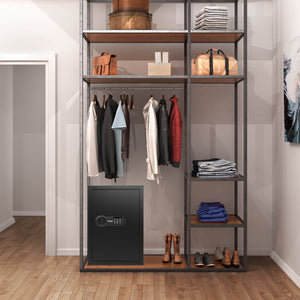With outside dimensions of 19.69" high by 13.78" wide by 12.99" deep and weighing 37.48 pounds, this compact yet robust safe is designed to fit seamlessly into your home, office, or dorm room environment. It's sleek design and black color effortlessly blend in with any decor.