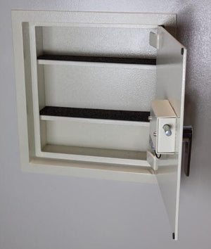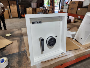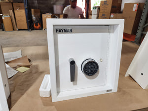 The Hayman WS-7 Heavy Duty Wall Safe Scratch & Dent is one of the best wall safes out on the market today. Hayman has a reputation for building quality safes for over 40 years. The Hayman WS-7 is the top of the line, heavy duty wall safe with a fully recessed door and SecuRam Digital Electronic Lock that is easily concealed behind a picture frame or mirror. The safe comes standard with a Group II Electronic lock and a 1/4" solid steel door. The space inside will give you much more room than most safes on the market. Most wall safes have about 4" of outside depth. The WS-7 heavy duty wall safe was built to maximize the space between the opening and the wall by providing you with a 6" depth. Available with an adjustable shelf, this sleek looking wall safe is sure to be the perfect addition to your home.