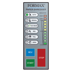• Self-Diagnosis System: Records operation time, number of auto-reverse sequences, volume of paper shredded, and can display information for service technicians