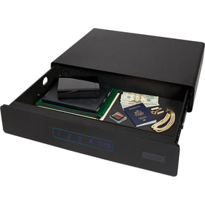 CLICK HERE to watch our video on “What to Do When Your Safe Arrives.”The SnapSafe 75402 is a medium-sized under bed safe designed for under a couch, bed or in the back of a vehicle. The slide-out drawer is easy to open and can hold and protect firearms, jewelry, documents and more. The outside dimensions are 5.00" high by 26.00" wide by 20.00" deep. It weighs a total of 51 pounds.