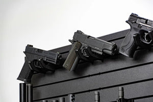 Your handguns get the same attention. This package includes a Multi-Pistol Hanger and three Handgun Racks, providing flexible storage for up to 9 pistols, including models equipped with lights, optics, or other accessories.