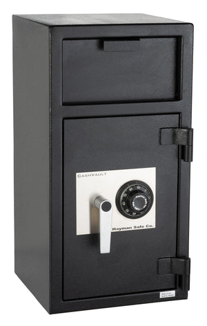 The SafeandVaultStore HPD2714 is a front loading depository safe made from solid steel and features a thick 1/2" door. The HPD2714 takes protecting your deposits and drops seriously. The front loading hopper is wide enough to accept wide envelope deposits and standard bank bags.