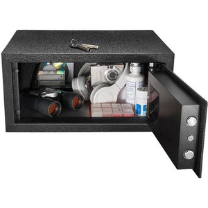 Having a place to protecting your valuables and personal belongings is important in today's world. The Barska AX12476 Biometric Keypad Security Safe allows you to store items such as medications, watches, jewelry, cameras, headphones, and other items you want to keep locked up. You can even store a handgun inside as well. Smaller laptops will also fit inside. Please measure the width of your laptop to make sure it will fit.
