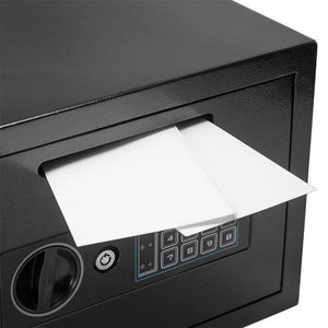 The Barska AX11934 Compact Keypad Depository Safe is designed for businesses that have a need for deposits into a safe via the envelope slot, that cannot be taken back out again until the safe is opened.  The slot is made for envelope sized drops allowing for cash, checks, etc. to be stored securely.  This is a great option for businesses such as landlords, etc.