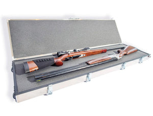 The Impact 5214-AW Double Rifle Case is an aluminum rifle case that features a bulletproof exterior made from 5032 H32 marine-grade aluminum with enough room to safely and securely store two rifles. The case also features key elements such as HD plated steel latches so that neither dust nor moisture can enter the case making this a virtually indestructible design.