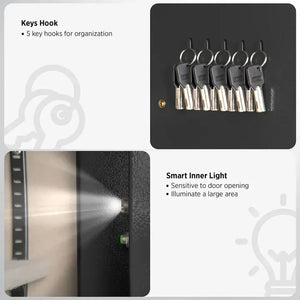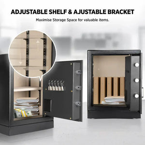Security is at the core of the DSR45’s design. The digital keypad lock supports 4 to 6-digit passcodes with optional double authentication using two keys for an extra layer of defense. It also features a hidden code function that replaces digits with symbols for added privacy. A tamper alert alarm deters intruders, while the opening record tracker monitors access history. With an emergency battery box and two master keys, you’ll always have a reliable backup.
