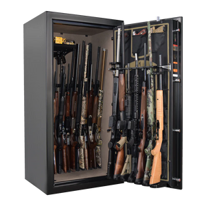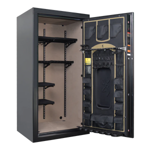 Browning knows that you want all of your sport rifles to stay safe and protected so this safe offers ample room for up to 33 rifles and shotguns as well as room for pistols. Featuring door and wall storage and a variety of convenient compartments for accessories and ammunition, this is an intuitive safe that promises to keep everything well organized and within reach. Additionally, because this safe offers 12-gauge security in the body, you know your belongings will be secure in the event of a break-in or theft.