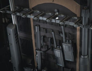 DPX Storage System - Includes a rack on the back of the door to store long guns and make them easier to access. Pouches and pockets allow you to organize other valuables.