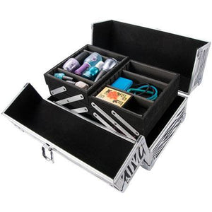 Barska's BF11986 includes a 2 tier trays on each side with adjustable dividers and 1 large compartment for bulky items. There is a heavy-duty handle for added comfort and grip. Outside dimensions of the BF11986 are 6.00" H x 7.25" W x 12.00" D. It weighs 3.70 pounds.